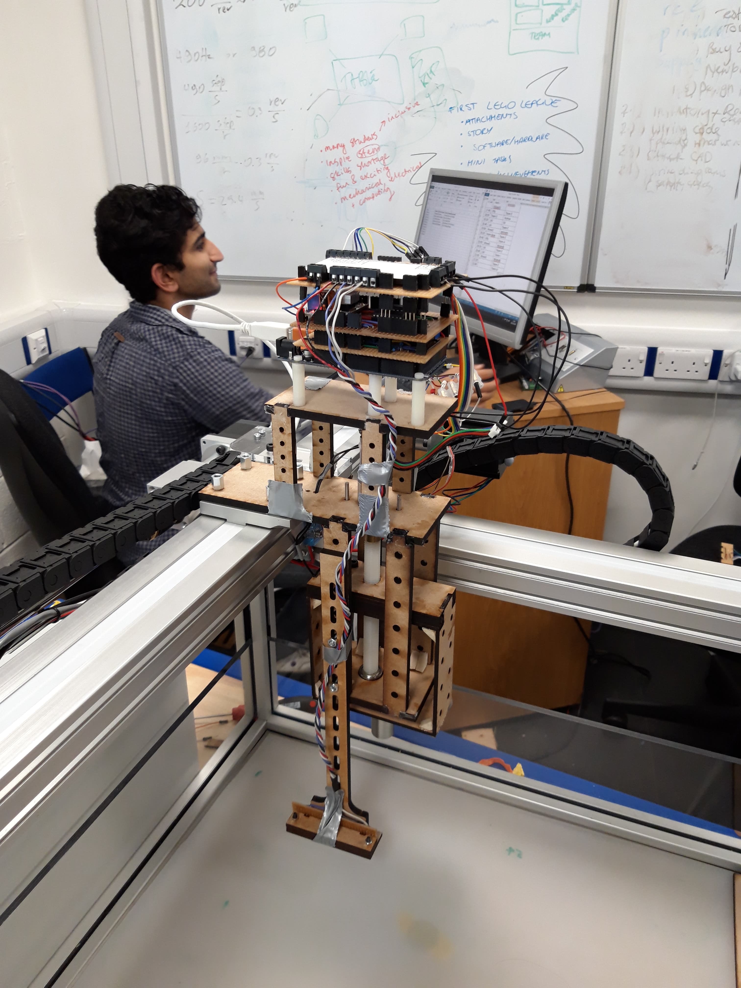 The first challenge was to control the gantry and implement a limit to prevent it from crashing into the side. This was done with the help of electronics, with the limit switch cutting power to the gantry motor through a logic gate.