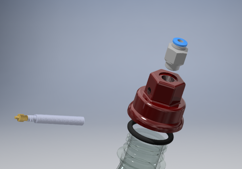 As a proof on concept a low fidelity prototype was created using a bottle cap with holes drilled for a bike valve and outlet, this showed that the idea was viable to take forwards.