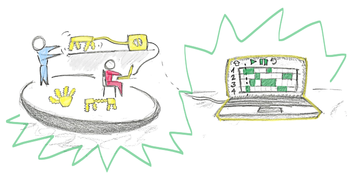 Sketches were made to illustrate the idea in a short storyboard style. The school would be provided with all the equipment required for running a design challenge using the kit. Some challenge ideas would be provided with the kit but a modular design was the preferred idea to allow more creativity.