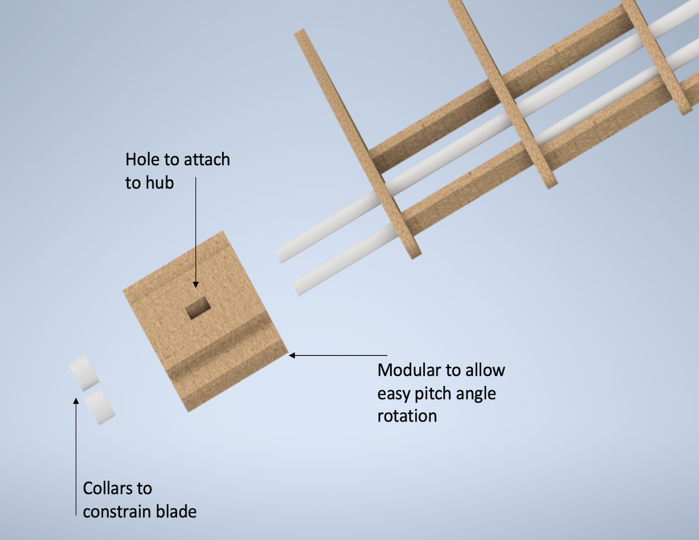 A concept that was quick to manufacture and allowed the pitch angle to be changed easily was chosen so additional testing could be carried out with a single blade. This allowed multiple iterations to be carried out in the short time available resulting in a model that converged to real world performance.
